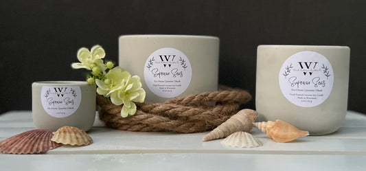Our signature candle collection is comprised of nine unique scents that are available in 2oz, 9oz or 18oz handcrafted concrete vessels. Choose between classic white or charcoal black.